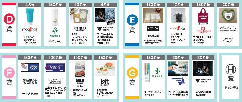マロニエゲート銀座1、マロニエゲート銀座3、無印良品銀座、銀座ベルビア館(銀座ロフトを含む全店舗)の当日のお買い上げレシートご持参で税込3,000円ごとに1回抽選できます。