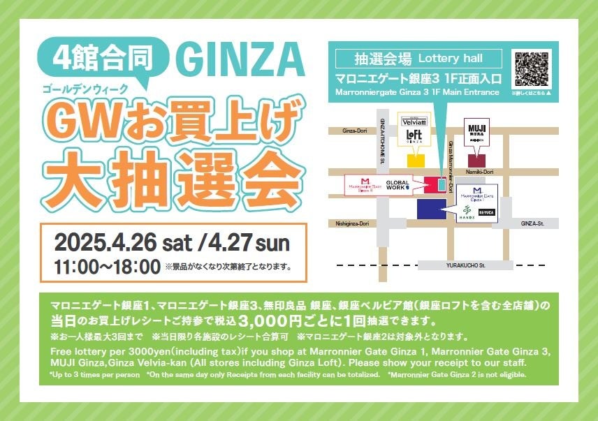 【マロニエゲート銀座1】4月26日(土)、4月27日(日)「4館合同 GINZA GWお買上げ大抽選会」開催!