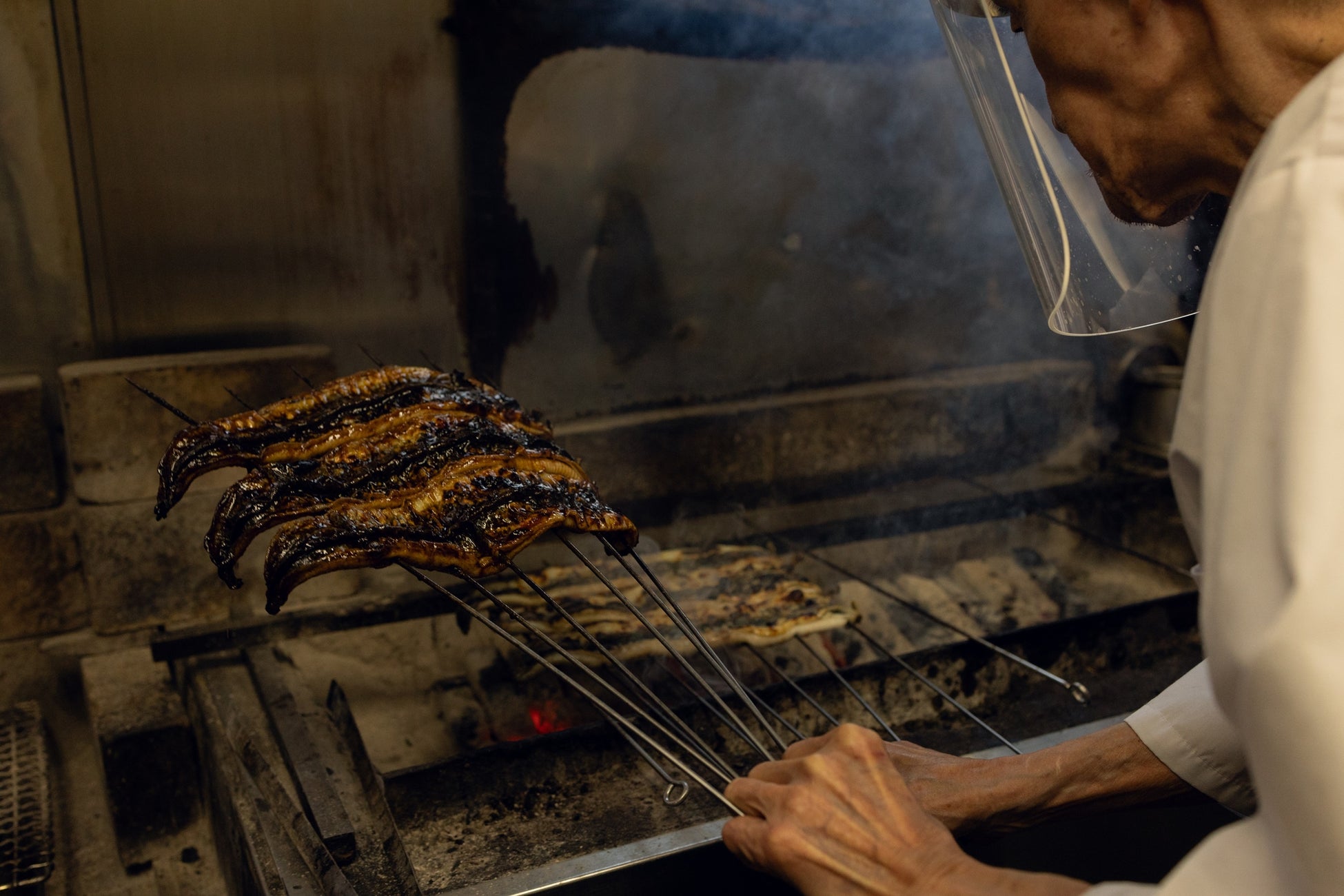 ひつまぶしは、もともと蒲焼きの切れ端や少しずつ余ったうなぎを活用したまかない食として生まれたと言われています。つまり、お客様ではなく、お店で働く我々のための食事でした。そのため、鰻専門店として、鰻を一尾まるごと大切に扱い、丁寧に焼き上げる職人の技術や想いが、どうしても省略されがちなのが現実です。実際にうなぎの一番美味しいところは、どのお店もお客様にお出しする鰻丼や鰻重に使っています。その一番美味しいところだけを、お客様に届けたい。だから、当店では創業以来、一尾をそのままの形で焼き上げる伝統的な「蒲焼き」を基本としています。その日に入ったうなぎを一尾一尾丁寧に捌き、良質な備長炭で焼き上げることで生まれる香り、皮目の香ばしさ、身のやわらかさ。そのすべてを存分に味わっていただきたいと思うからこそ、あえて「ひつまぶさない」という選択をしております。