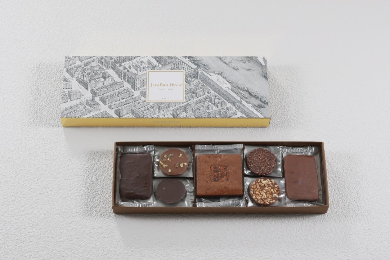 カリカリとした食感が愉しめるサブレをショコラコーティングした「サブレ カレ」や、一口サイズの「プティパレ」、ザクザクとした食感の「クラッカン」をパリの地図をモチーフにした銀座三越限定パッケージでご用意しました。