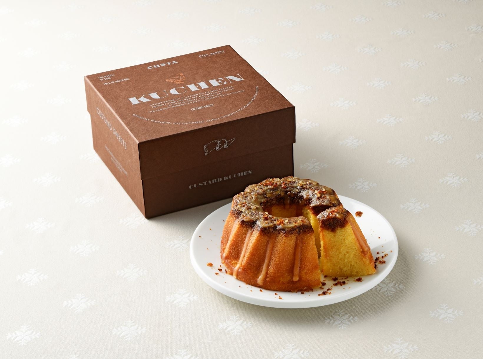 銀座三越への出店を記念して生まれた「カスタードクーヘン(ダブルカラメル)」は、カスタードプリンをそのまま焼き菓子にしたような、しっとりとしたケーキ。別添えのキャラメリゼをかければ、カリッとした食感と香ばしさを、より深く味わうことができます。
