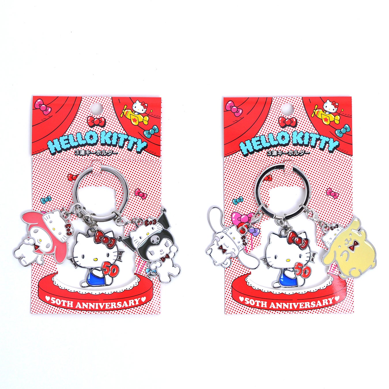 [右]【マーケット限定】ハローキティ50th 3連キーホルダー 全2種 各1,485円
