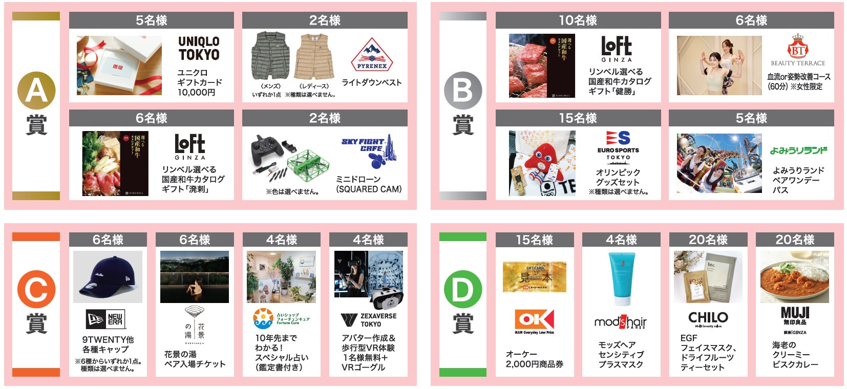 今年は10,000円のギフトカードやダウンベストなど景品が更にパワーアップ!