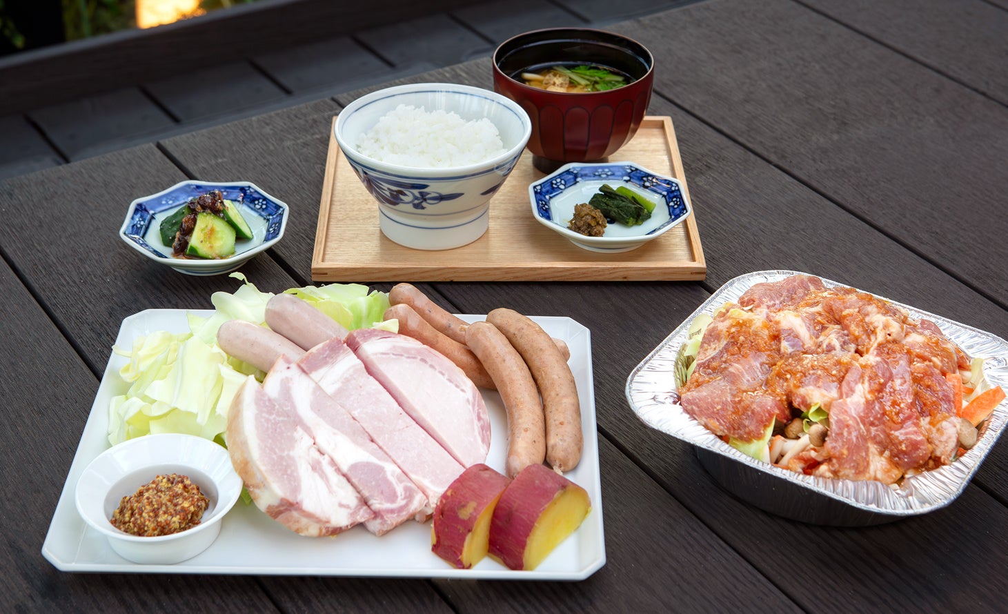 料理人が吟味した信州の肉や食材をご堪能いただく、食べ応えのある「蔵部のTEPPAN」。コクのある特製味噌ダレで肉と野菜を蒸し焼きにする<信州味噌ちゃんちゃん焼き>は、豚・鶏・ラム +1,000円(税込1,100円)よりお選びください。最後は<銅釜で炊いた白米>もしくは<強い火力で出汁とともに羽釜で炊き上げた「信州大王イワナ」の炊き込みごはん +500円(税込550円)>と、味噌汁・お漬物で締めくります。
