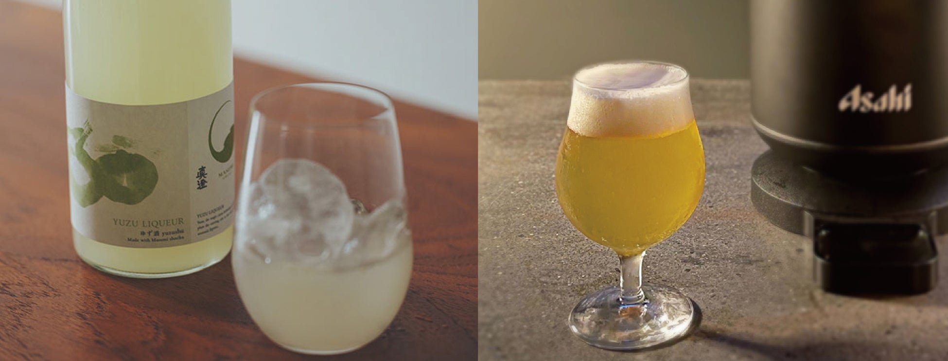 世界で人気が高まる日本の柑橘、柚子。蔵元が自家製焼酎に果汁をブレンドしたリキュール「ゆず酒」も、冷たい生ビールに合わせて、ぜひお試しいただきたい一品です。ビールを飲み慣れない方にもフルーティーで飲みやすいビール割。「アサヒプレミアム生ビール 熟撰」に加えて、割合はご自由にお愉しみください。柚子の心地よい苦味や爽やかな香りが、酸味と共に口の中をさっぱりとさせてくれます。