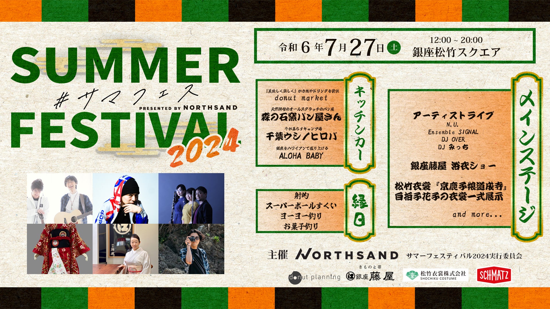 銀座4丁目・歌舞伎座タワーに本社を構える総合コンサルティングファームの株式会社ノースサンドは、7月27日(土)に銀座松竹スクエアにて「サマーフェスティバル2024」を開催。実際に歌舞伎座で上演された演目で着用された衣装の展示、松竹衣裳の方によるトークショー、松竹芸人さんによるお笑いLIVEなど盛りだくさんのステージコンテンツも。15:00からは浴衣や甚平でご来場いただき、ステージへ登壇、記念撮影ができる浴衣ショーも開催します。