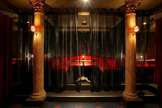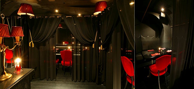 紅く厚いベルベットカーテンで仕切られたL字型のシート。気になるあの人と距離を近づけたい時に…。