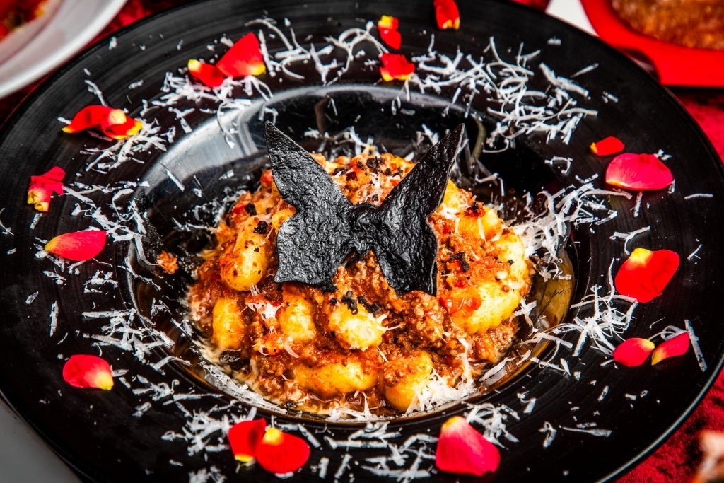 暗黒蝶が止まりしは禁断の贅を尽くした一皿。「一族に切り刻まれる魔界の家畜」と呼ばれる館自慢のローストビーフと同等の肉を挽いた肉感たっぷりのラグーソースと、塩気の効いた羊のチーズ・ペコリーノを纏ったニョッキからは、豊潤なトリュフも香り立ち…この皿を知らぬことが❝恐怖❞と、黒き蝶は暗示しているのかも。