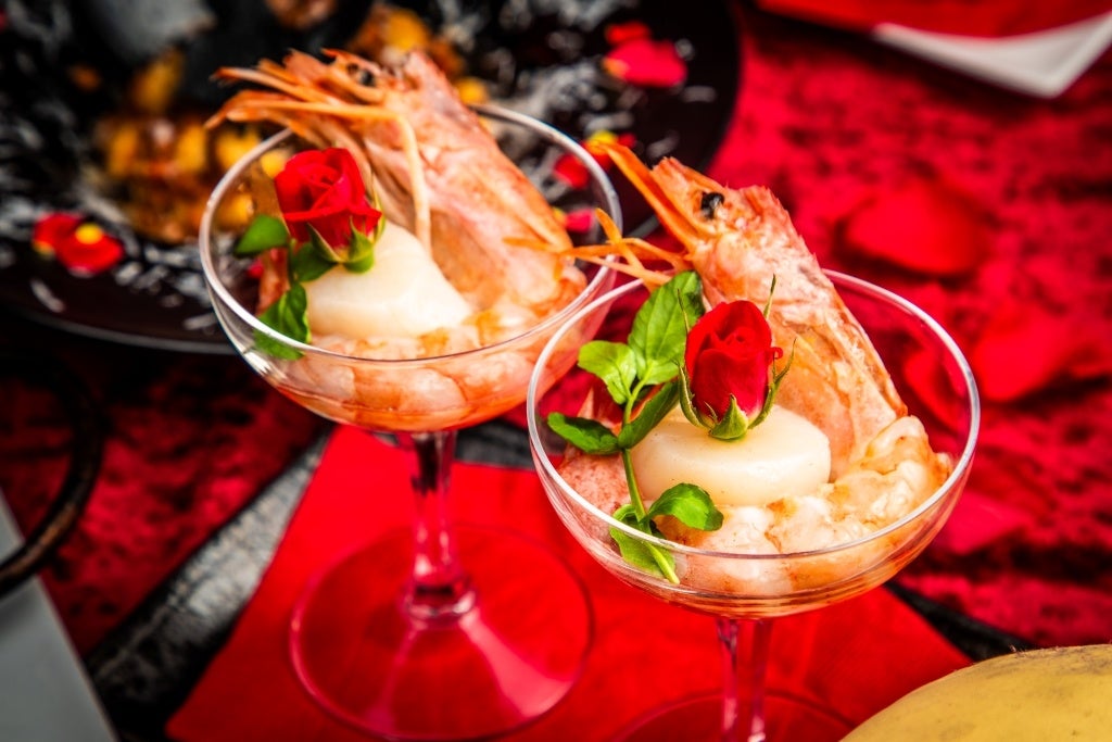 †一族に伝わる薔薇の盃 〜赤エビとホタテのマリネ グラス仕立て〜