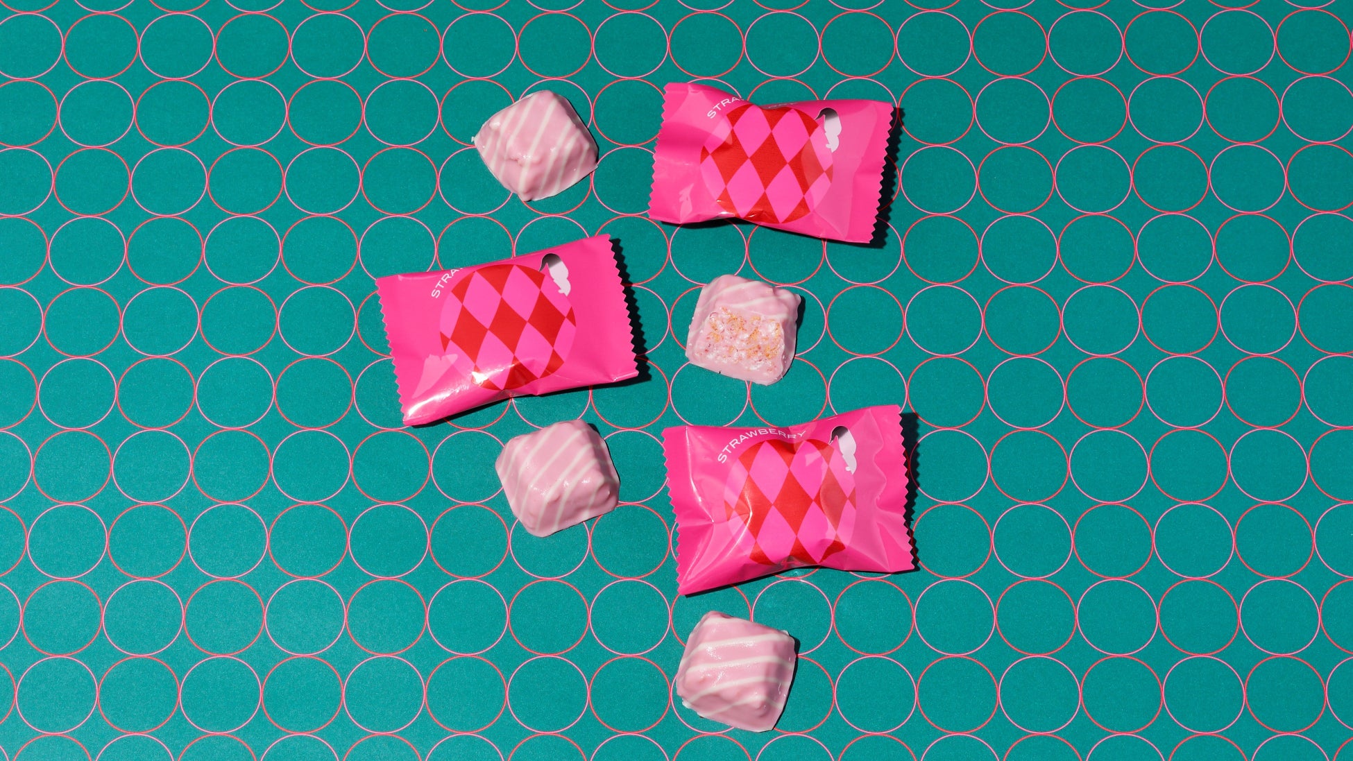 ミルキーなホワイトチョコレートをベースに、さくさくとした⾷感のクランチと甘酸っぱい苺のパウダーでアクセントを付けました。