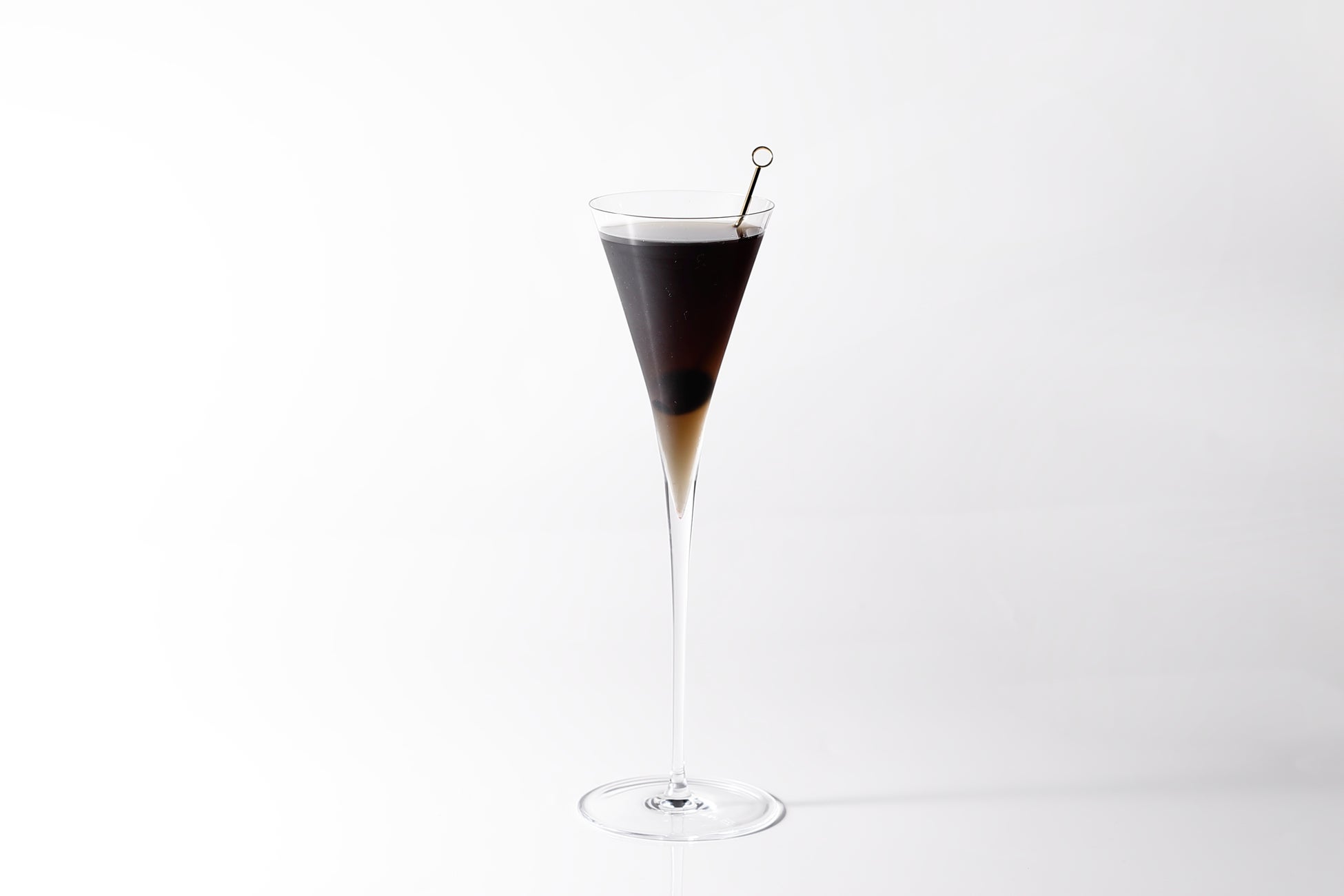 ブランデーをベースにした黒いカクテル。ブラックオリーブとお楽しみください。