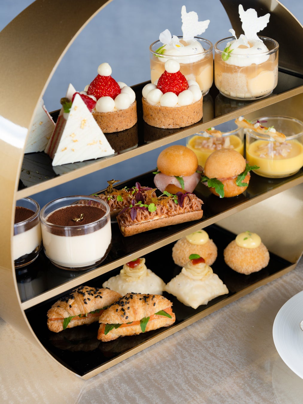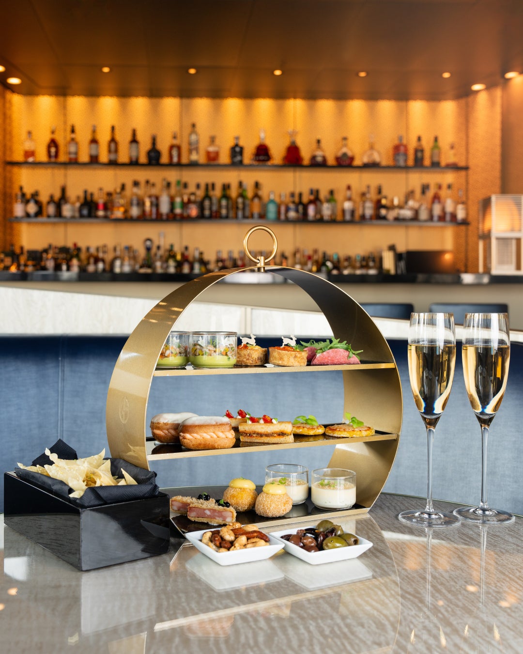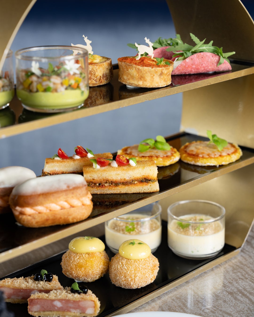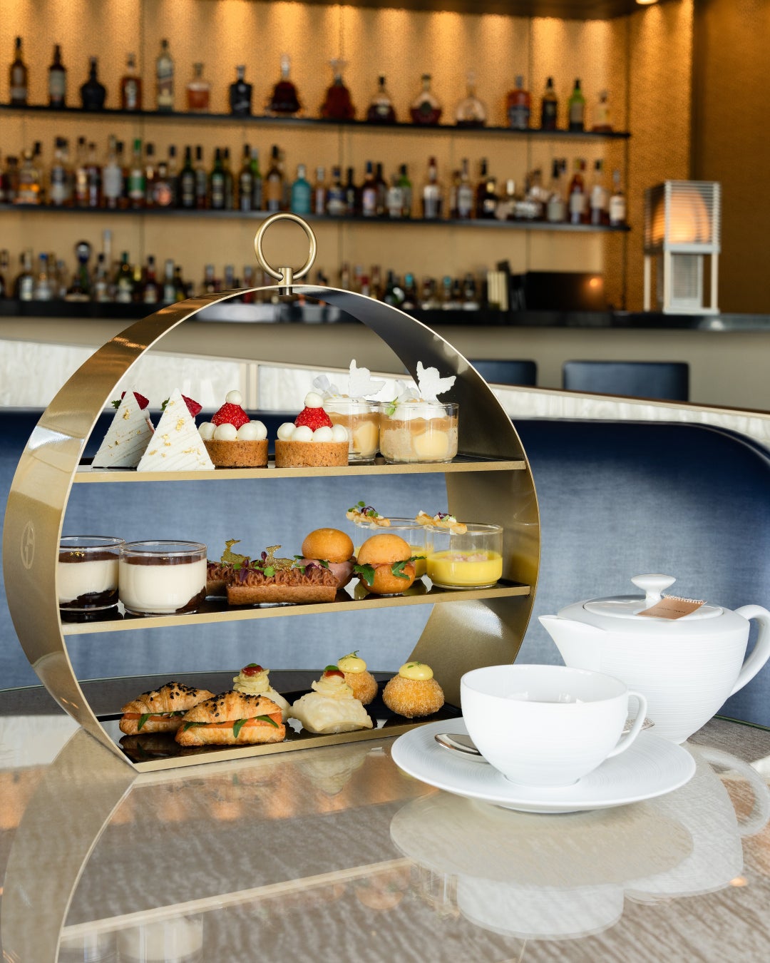 アルマーニ / リストランテ 11 階ラウンジバーの人気メニュー、アフタヌーンティーとアペリティーボボックス。繊細でエレガントなスイーツやセイボリーは、ミニサイズながら⼀つ⼀つ丁寧に作られ、こだわりの詰まった味わいをお楽しみいただけます。