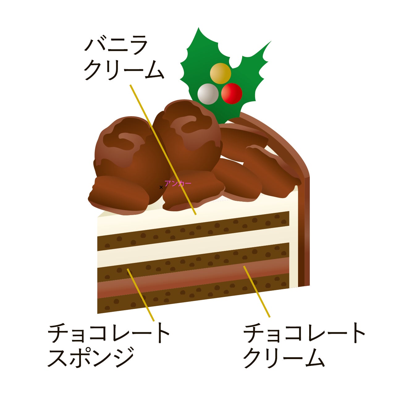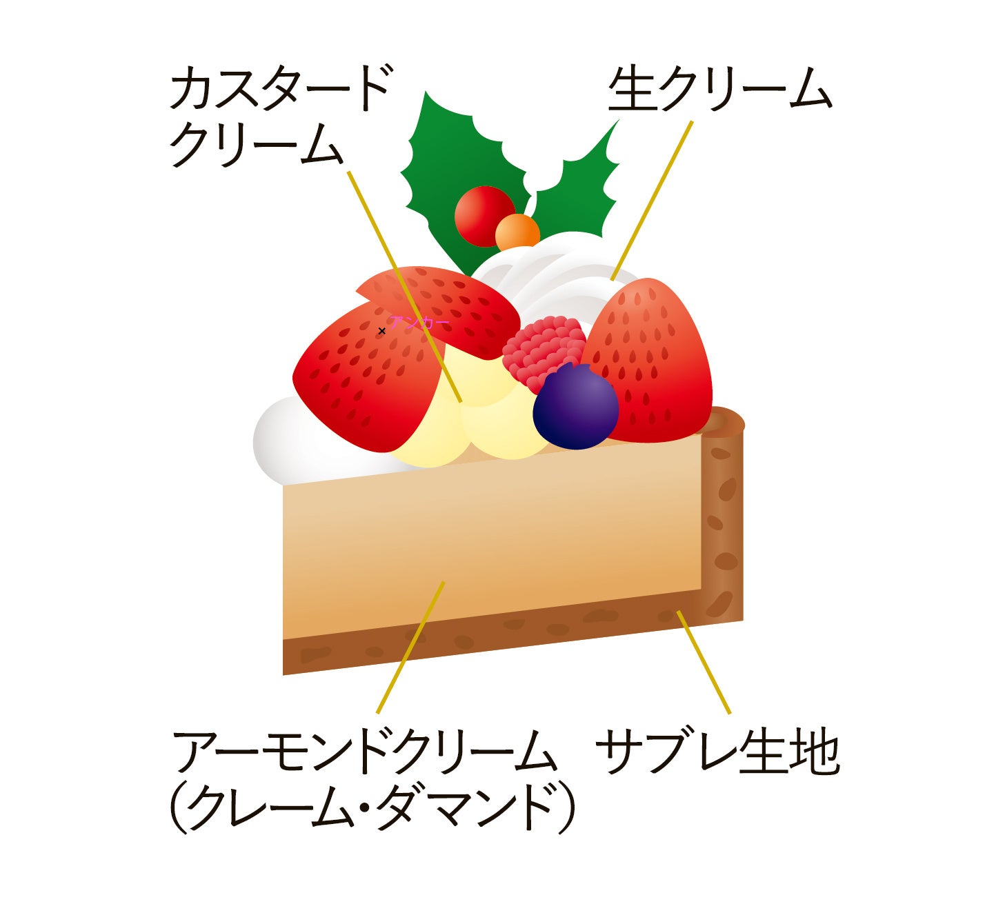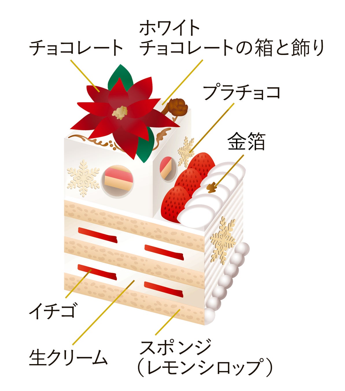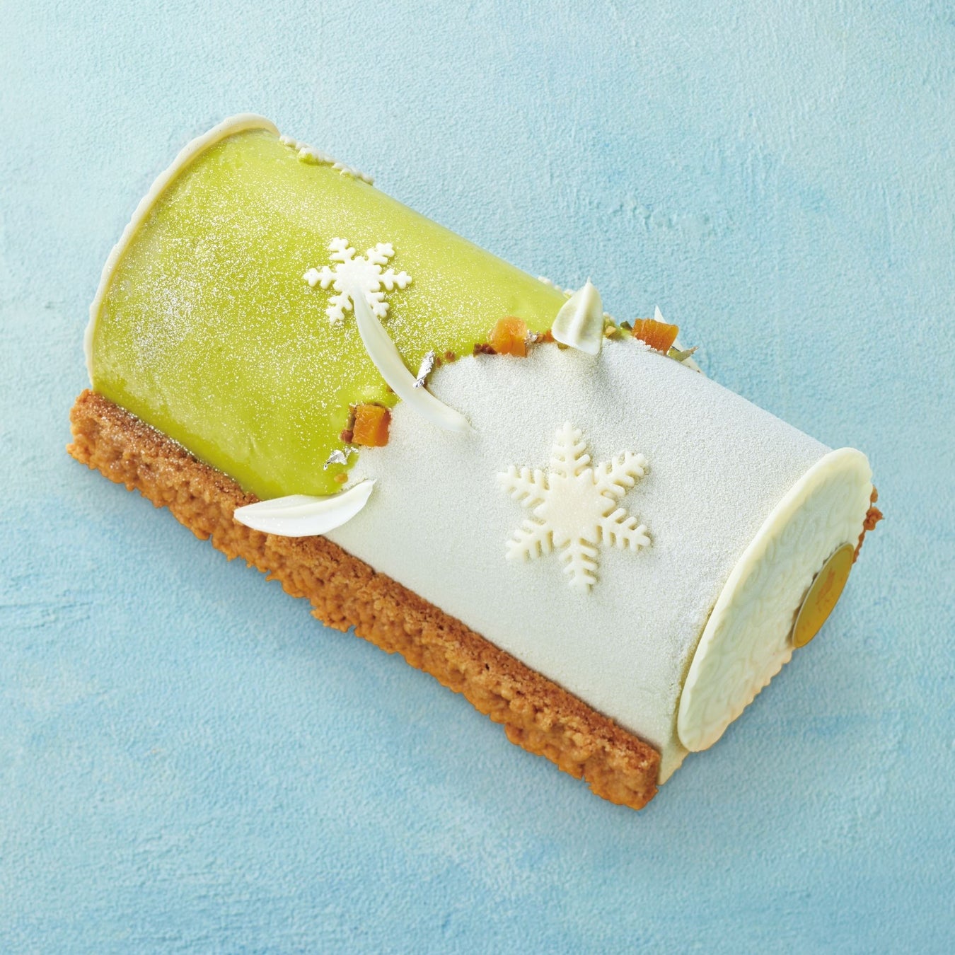 側面のシュトロイゼルの食感と、ほろ苦いキャラメルムース味がアクセントとなる、酸味と甘みが引き立つクリスマスケーキです。