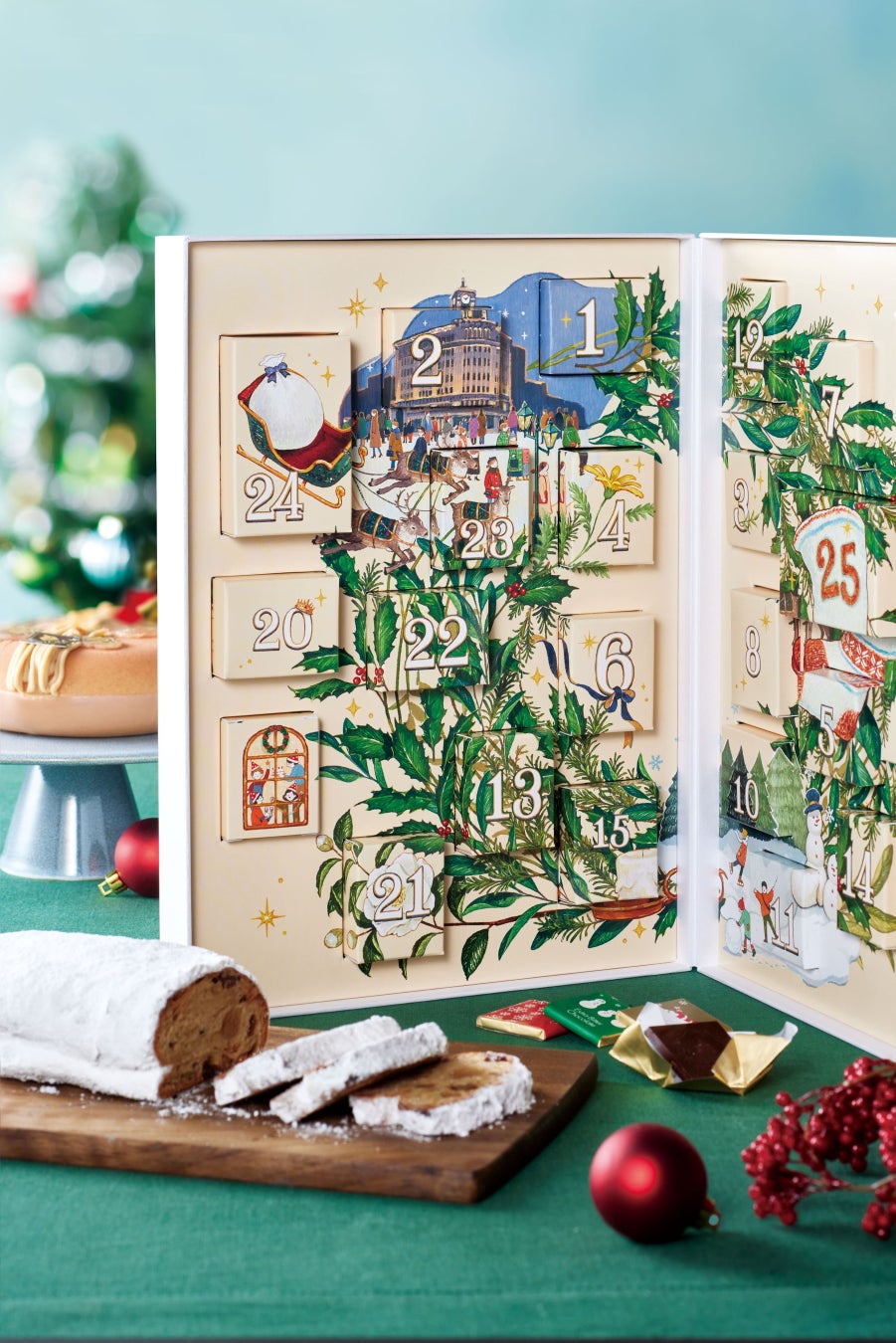 クリスマスまでのカウントダウンを楽しめる、和光でも毎年人気のアドベントカレンダー。今年のテーマは「Evergreen(エバーグリーン)」。クリスマスの象徴、そして幸運や永遠の意味も表すリースをメインモチーフにしました。自宅用はもちろん、大切な方への贈りものにもおすすめします。ブック形のアドベントカレンダーは、自立するので棚などにも飾ることができます。