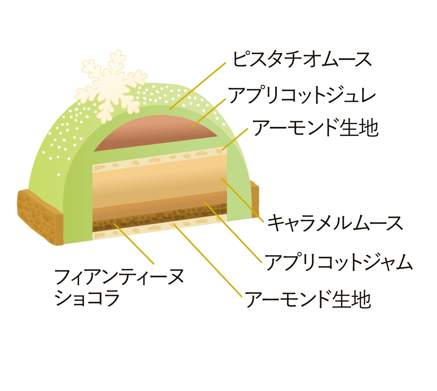 濃厚で香ばしいピスタチオムースとアプリコットの組合せ。