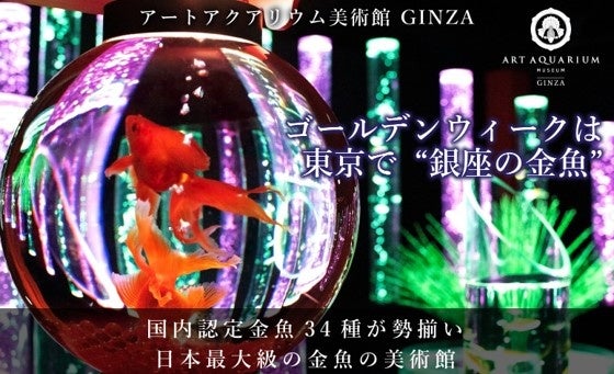 アートアクアリウム美術館 GINZAは、大都会・銀座のランドマークでもある銀座三越にある日本最大級の金魚アートを楽しむことができる常設美術館です。都会の喧騒をも忘れてしまうような唯一無二の幻想世界で金魚の癒しに触れる、非日常体験を皆様にお届けします。GWの東京観光はアートアクアリウムでとっておきの思い出をつくりませんか?銀座駅直結なので、雨の日でも快適にお過ごしいただけます。