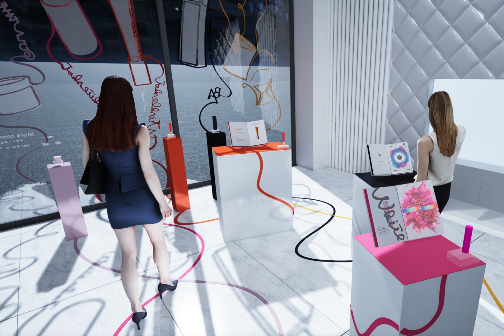 2月1日(木)からは、4つのブランドをデザインしたポーラのデザイナーの想いを展示いたします。各ブースに設置された本を1ページずつめくっていくと、ブランド開発にインスピレーションを与えたキーワードや、制作中のスケッチなどが描かれており、紆余曲折のストーリーを経て完成した商品が徐々に浮かび上がってきます。ページをめくるごとに完成に近づいていく過程を通して、ポーラのデザイナーが、デザインの完成までに辿った軌跡を追体験できます。