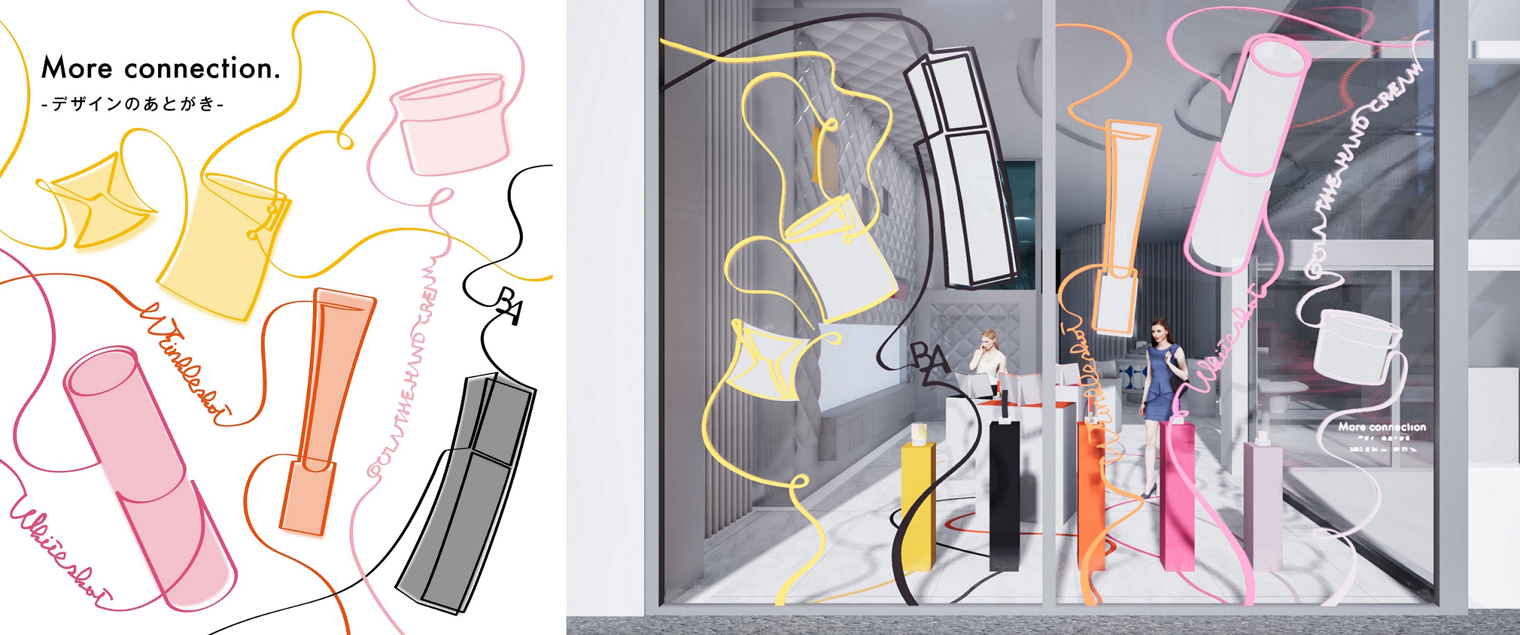 ポーラギンザのウィンドウ、店内全体での空間表現と共に、デザイナーたちが添える“あとがき”をお楽しみいただけます。