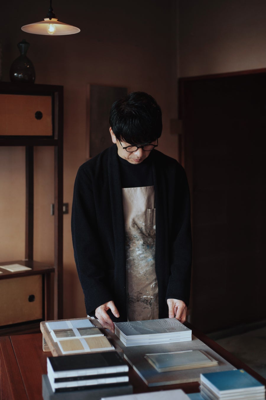 日本人の文化や暮らしに寄り添ってきた唐紙をモダナイズする工房。京都府西陣で2009年に創業。細かい手作業で表現される作品は、自然の柔らかさとぬくもりがあります。今回のプロジェクトのために、新素材研究所が特別に図案化した文様を用いた唐紙を地階の壁の仕上げに使用。セイコーハウスの石壁の文様を型取りし唐紙にプリント、オリジナルのレターセットが完成しました。