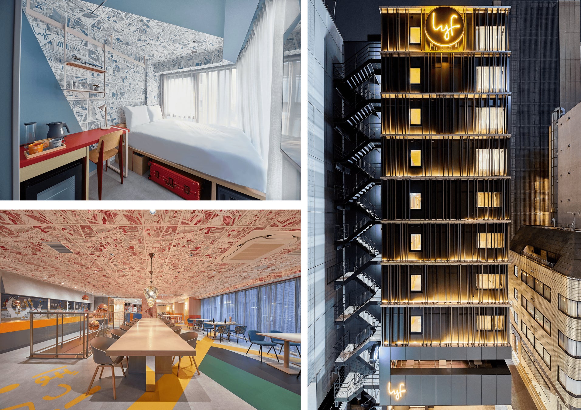 全140室、8タイプの客室には、自分だけの時間を楽しむ1名用~広めのスペースがありアーティストたちにより特別に創作されたグラフィックデザインは、lyf銀座東京での滞在と銀座をテーマに描かれており、国際色豊かな銀座での滞在をより一層楽しいものにします。
