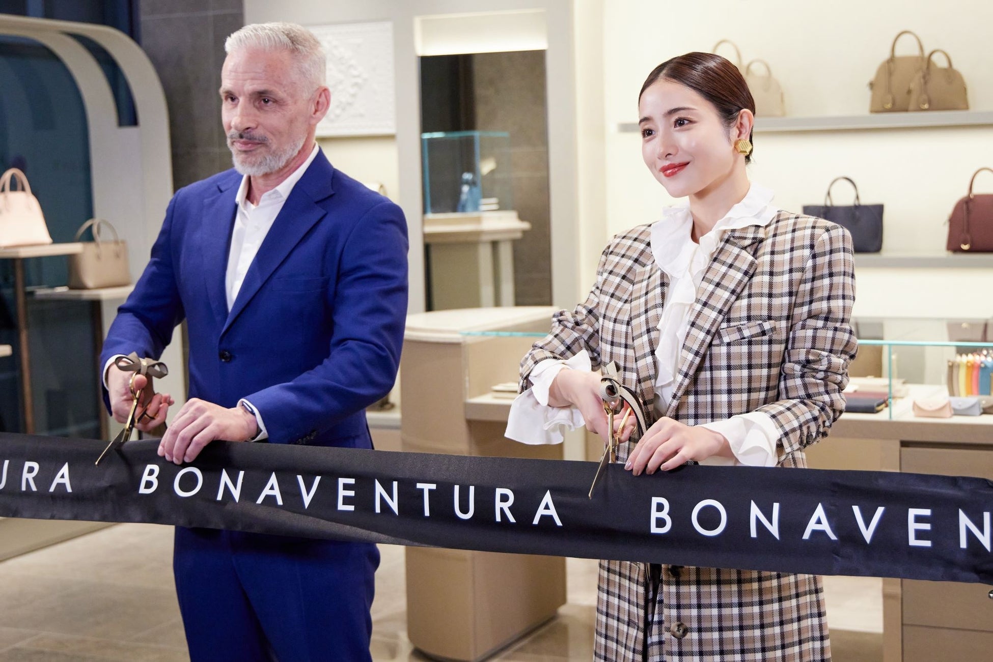 セレモニーではゲストの石原さとみ、BONAVENTURA グローバルCEOのマウロ・ベックによるテープカットが行われ、銀座店のオープンを祝福。