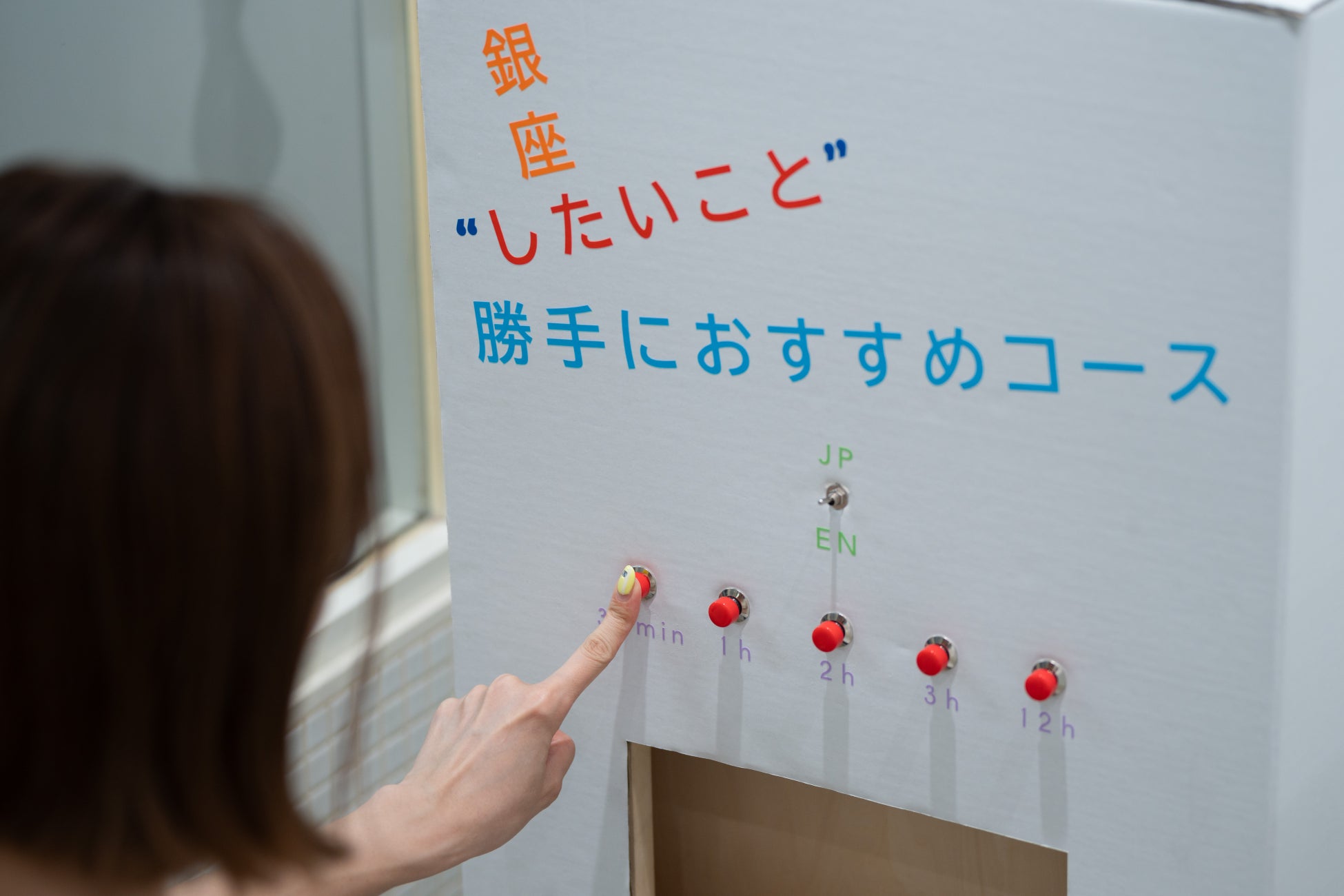 あれもしたいこれもしたいと迷ったり、どこに行ったら良いかわからないときは、Sony Park Miniにお越しください。Sony Park Miniでは、壁一面を埋め尽くす “したいこと” であふれる空間が広がり、それが満たされるスポットを直感的に探したり、その情報をきっかけにSony Park Miniのスタッフと “銀座でしたいこと” 談議に花を咲かせることができます。さらにスポット案内が入った「オリジナルステッカー」がゲットできるゲームや、30分/1時間/2時間/3時間/12時間といった銀座で過ごしたい時間に合わせて、ランダムに散策コースをプリントアウトするマシーンなど、遊び心あふれる体験をご用意しています。
