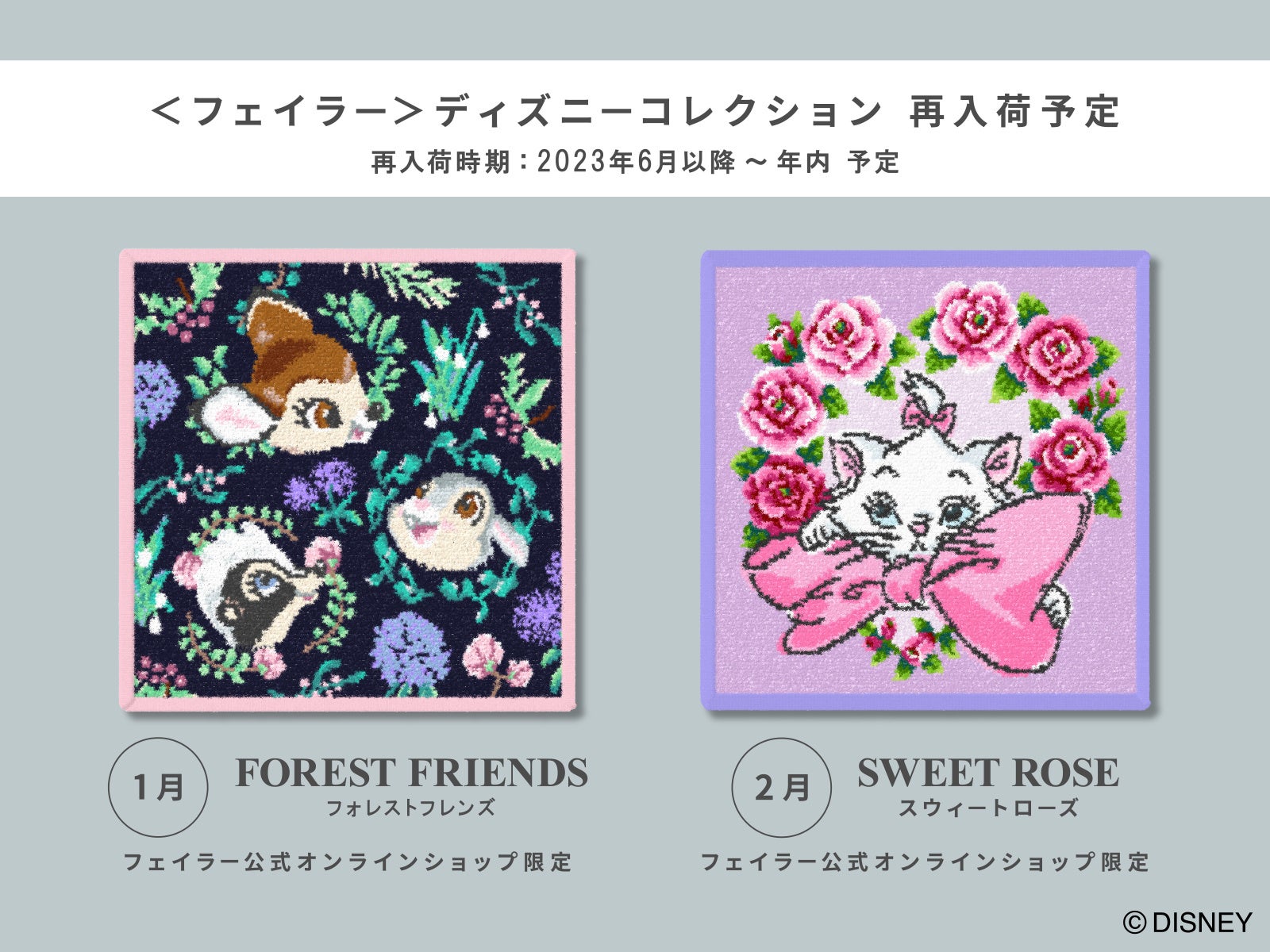このたび、1月発売『フォレストフレンズ』、2月発売『スウィートローズ』のフェイラー公式オンラインショップ限定ハンカチにつきまして、追加生産を決定し、2023年6月以降~年内に再入荷を予定いたしております。早期再入荷実現のため、生産商品を絞り、店舗限定ハンカチの再入荷はございません。