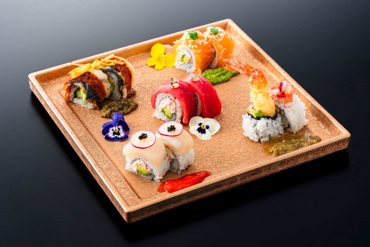 (うなぎを使用したドラゴンロール、サーモンアボカドロール、TUNAロール、帆立のカリフォルニアロール、海老天婦羅ロール)
