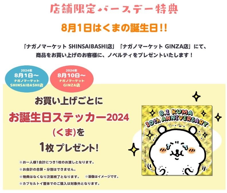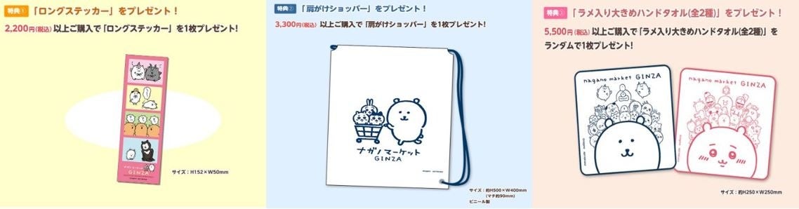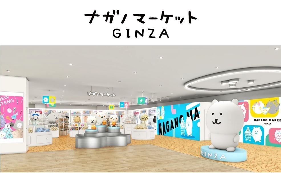 ナガノマーケット GINZAは「ナガノのくま」や「ちいかわ」で人気のイラストレーター『ナガノ』さんのグッズが集まる関東唯一の常設店です。店頭ではナガノのくまのバルーンが皆様をお出迎え。あちこちにナガノキャラクターがあしらわれている楽しい店内空間には、写真撮影が楽しめるスポットを多数ご用意しております。