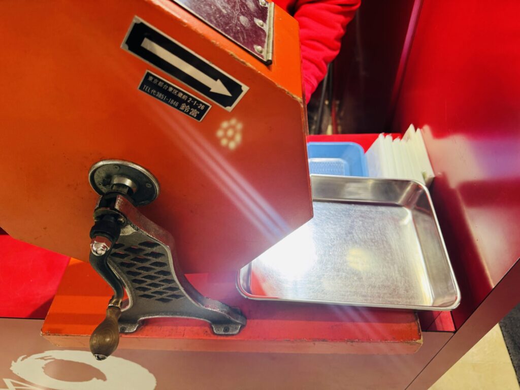 あの取っ手を回す、昭和から続くガラガラ方式である。