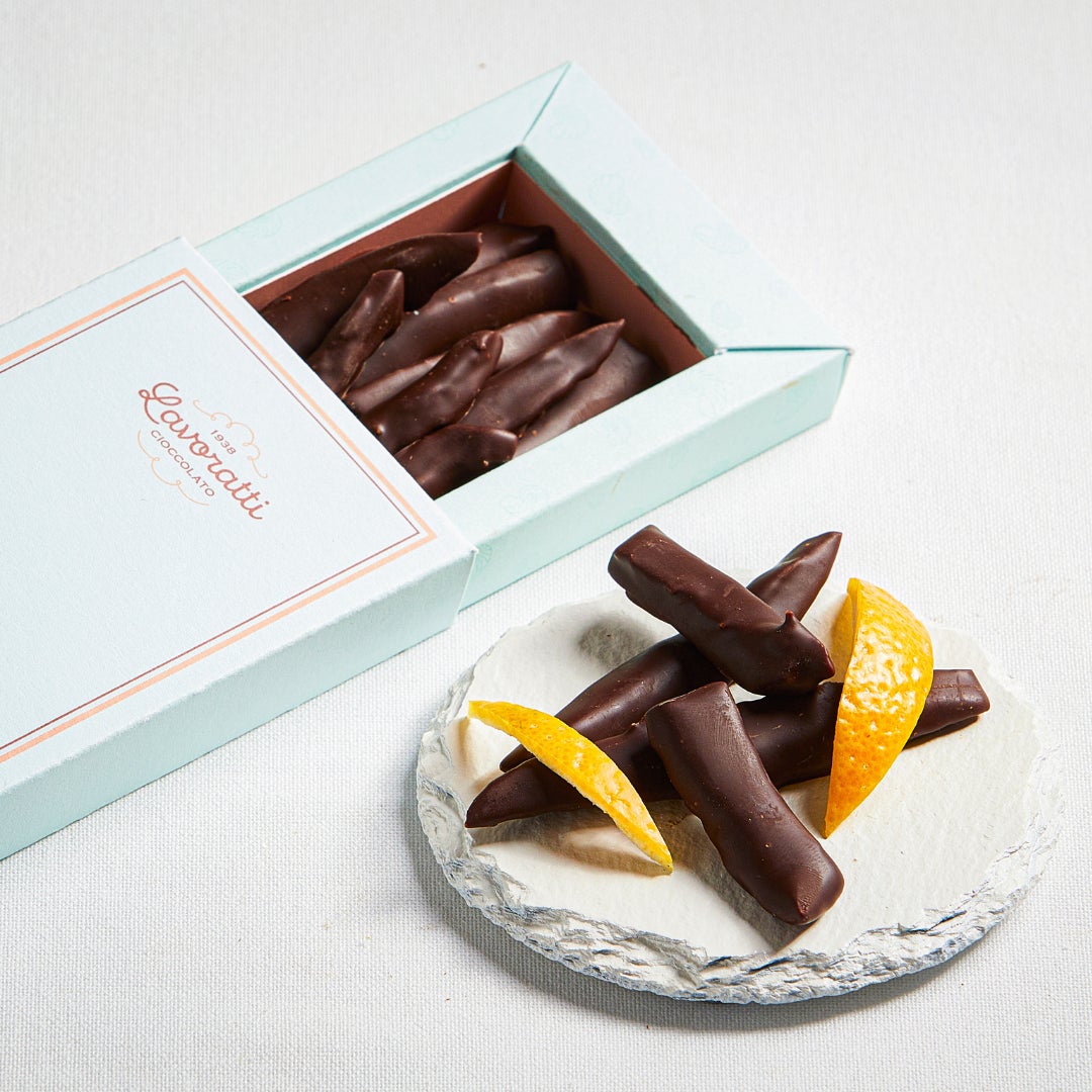 美しい海岸に面したイタリア南西部のカラブリア産のベルガモットをダークチョコレートでコーティングしました。