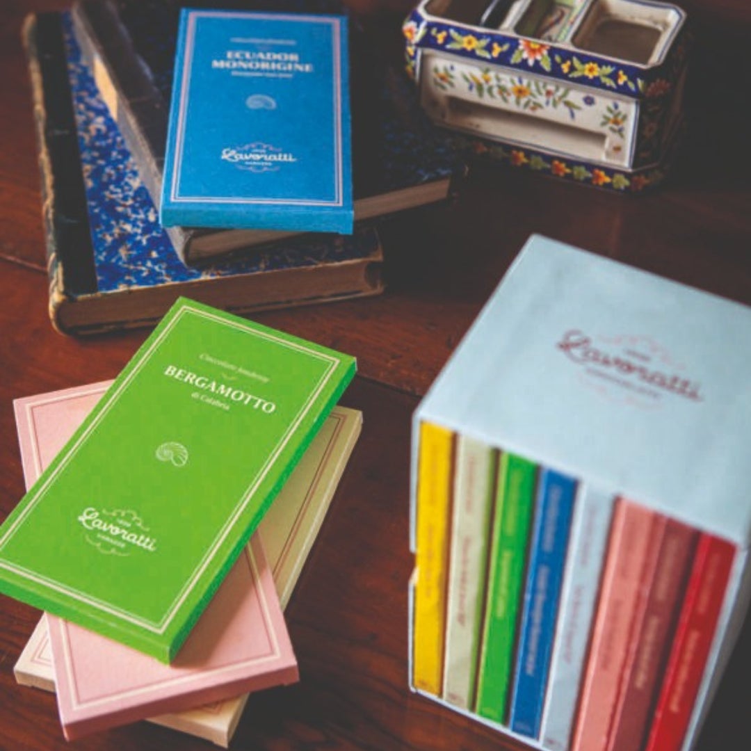 一枚一枚のタブレットが「地中海の味を発見するラヴォラッティの旅の物語」であるというコンセプトから、本の表紙を彷彿とさせるパッケージを採用。チョコレートと一緒に目を惹くデザインもお楽しみください。