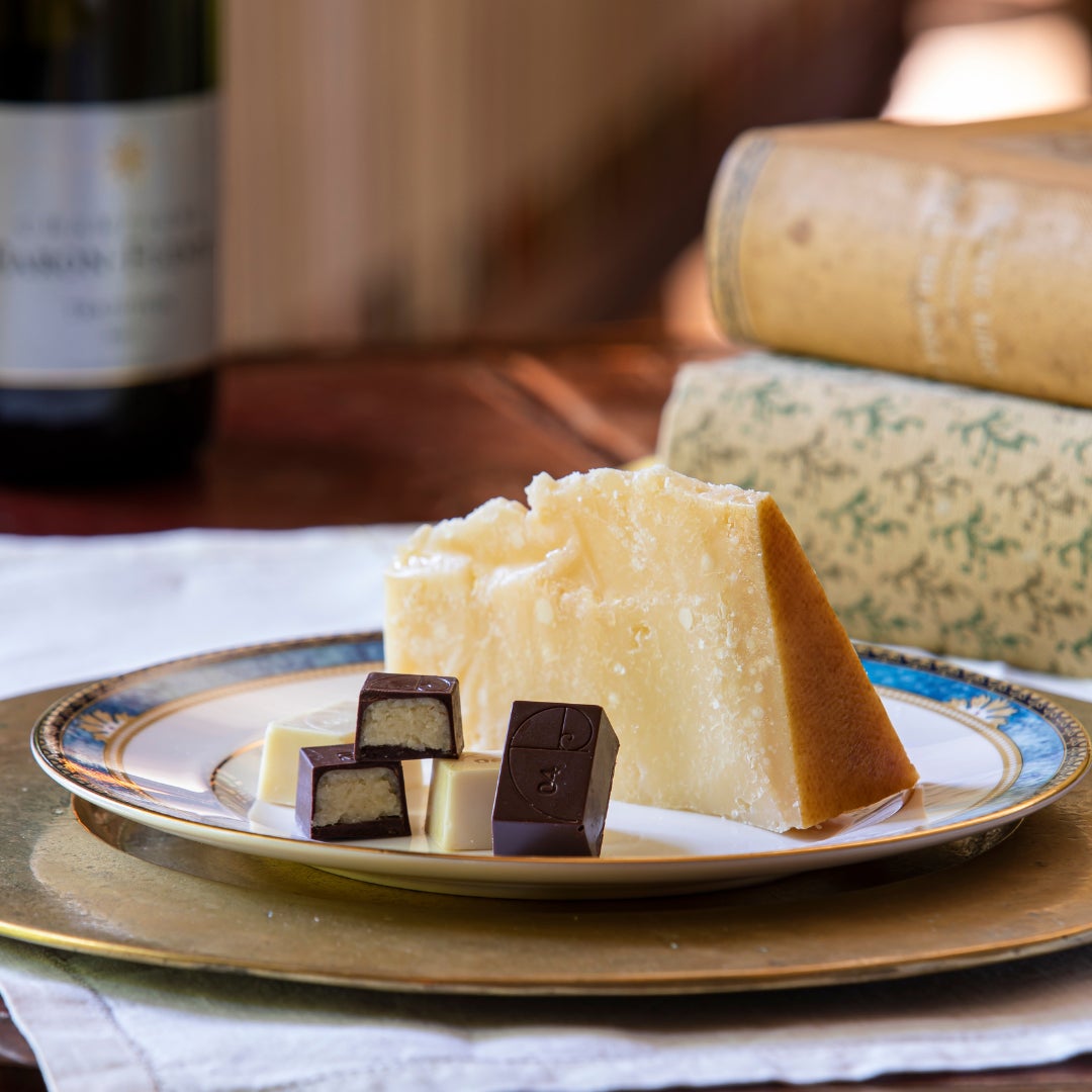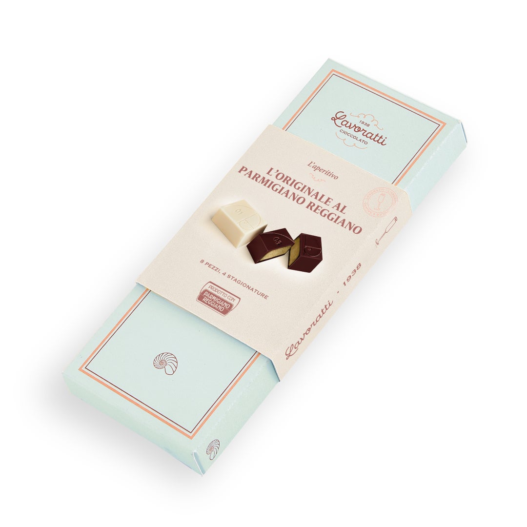 旨味とコクのある味わいが特長で、それぞれ熟成期間が異なるパルミジャーノ・レッジャーノにあわせ異なるチョコレートを使用。 パルミジャーノ・レッジャーノとチョコレートの完璧で贅沢なバランスをお楽しみください。