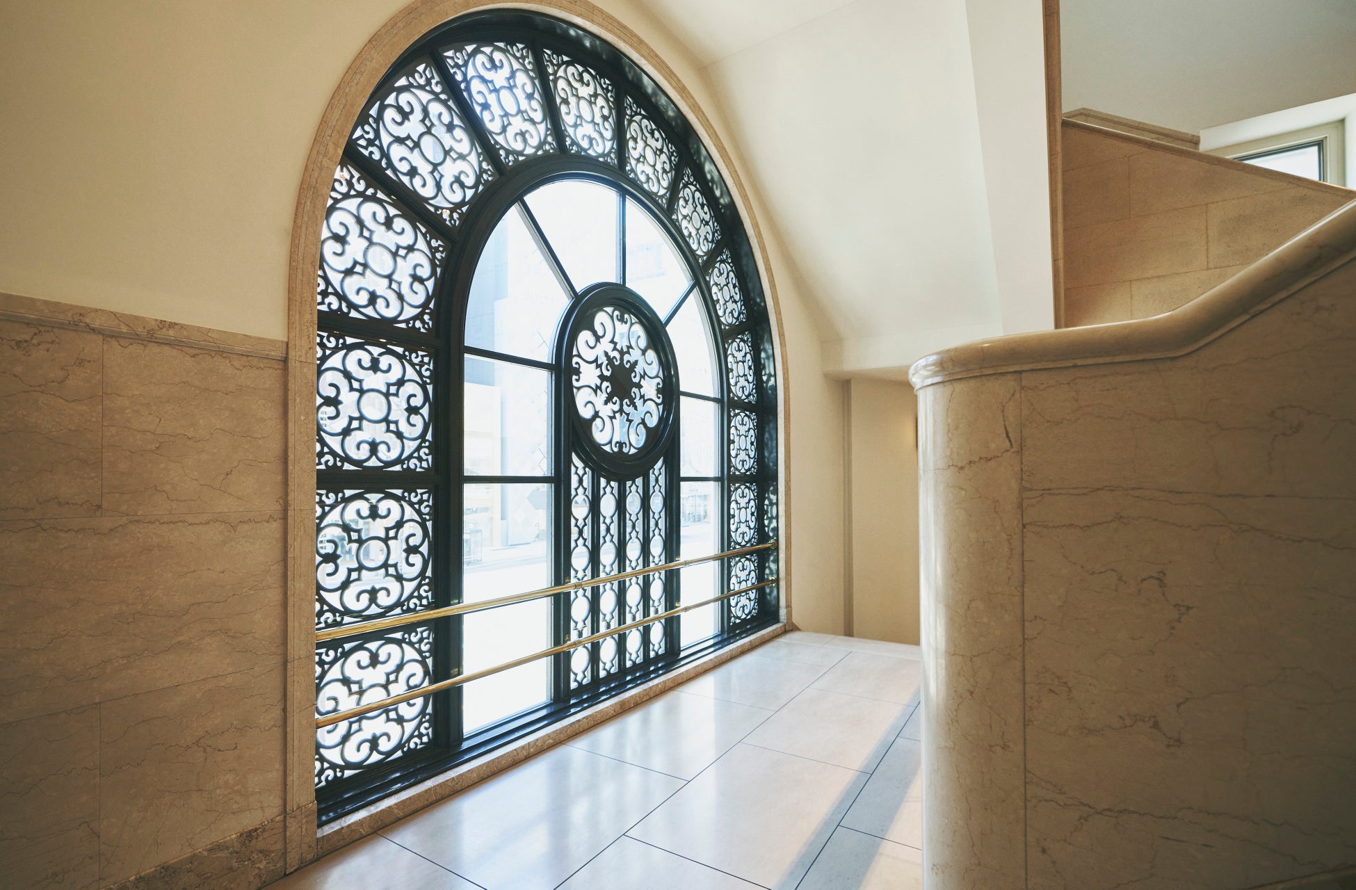 和光本店内の大窓前は、光が差し込む優美なアラベスク模様が特徴です。
