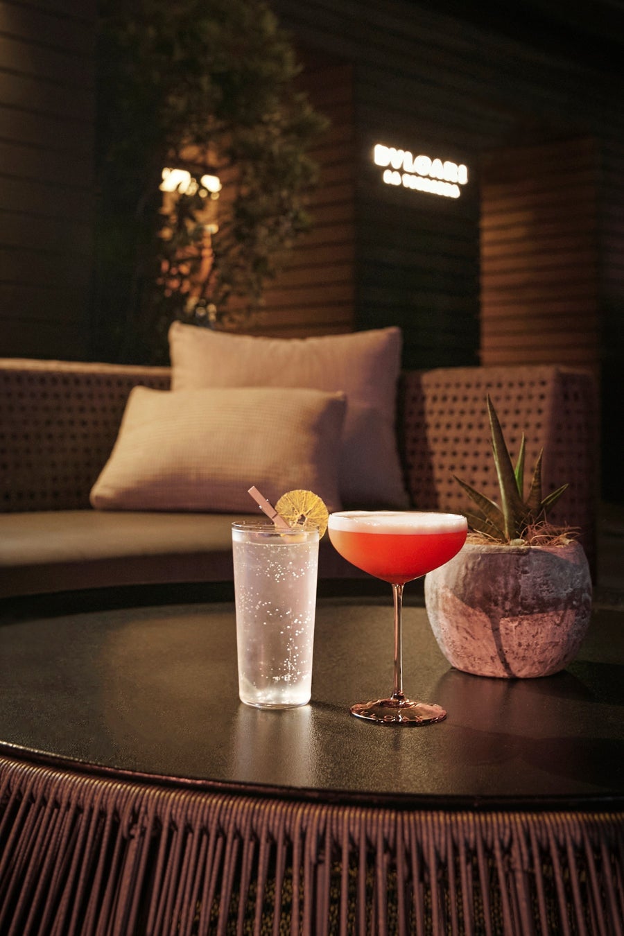 12時からオープンするテラスでは、ランチのひととき、そして午後のティータイムからは、イタリアン ドルチェやドリンクをお楽しみ頂けます。また夕方から陽が沈んだあとは、シャンパン・アペリティーヴォ、そして、ブルガリ ギンザ・バーのシグネチャーである「ブルガリ・カクテル」または、この季節におすすめのイタリアンハイボールほか、イタリアン・クラシックカクテルを現代風にアレンジしたカクテルを数多くご用意しております。心も解放されるエクスクルーシブな空間で、特別なひとときをお過ごしください。